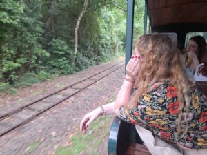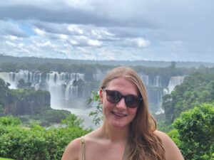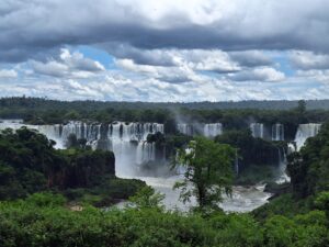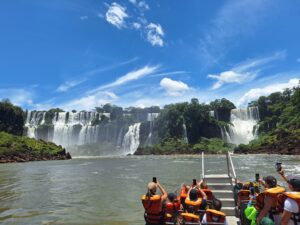 We brengen in totaal drie dagen door bij de watervallen; twee aan de Argentijnse kant waar we een volledige dag de watervallen, fauna en flora bezoeken en een andere dag naar Paraguay gaan om te kijken wat er daar allemaal gebeurt, en een dag aan de Braziliaanse kant. De watervallen zijn groot, en van de Argentijnse kant nemen we ook een bootje waarin we doorweekt worden door alle watervallen. Ze noemen het de “gran aventura” en het was inderdaad avontuurlijk! De voorbereiden onder ons droegen een bikini, en de anderen waren gedoemd om de rest van de dag met natte kleding rond te lopen. Iedereen kreeg een grote waterdichte tas voor al hun spullen. Tijdens het wandelen zagen we toekans en neusberen, en honderden vlinders. Deze dag was een vol avontuur! Op het treintje terug zagen we de toekans, we waren er zo enthousiast over dat een vogelspotter die toevallig op hetzelfde treintje zat, ons opzoekt nadat we afstappen. Hij zegt dat hij een toekan heeft gespot en neemt zijn grote verrekijker op het statief boven. Hij richt het naar de vogel en we zien een prachtige toekan met zwarte veren en een gekleurde snavel. Hij gaf ons een sticker van zijn onderneming, die vol trots op mijn tablet hoes plakt. Ik kocht ook een hele mooie patch van het park, die schittert op mijn rugzak. Wie had gedacht dat ik zo gek zou zijn van wilde dieren spotten? Toen we de volgende dag naar Paraguay gingen, wisten we niet zo goed wat te verwachten. Ciudad del Este staat bekend om shoppen en scammers, en je kan er zo zonder paspoortstempel binnen wandelen via de vriendschapsbrug. De straten lijken erg op Bangkok, met hoge oude flatgebouwen, elektriciteitskabels en overal tentjes met goedkope Chinese producten op straat. We lopen rond, maken grappen, kopen wat neppe zonnebrillen en andere spullen die we nodig hebben, en gaan iets eten. Een vriend van me uit Mendoza noemde het “scammer city” omdat er zoveel neppe dingen worden verkocht. Ik maak maar 1 miskoop van 2,5 euro, maar ben zeer tevreden van alle andere spullen die ik kocht. (Een nieuw toetsenbord, handgel, een paraplu en oorbellen) In de avond keren we terug naar Brazilië en de dag erop gaan we voor een laatste keer naar de watervallen. Langs de Braziliaanse kant zijn de watervallen heel mooi om te bekijken. De uitzichtpunten zijn prachtig en we kijken tegen de watervallen aan waar we twee dagen ervoor boven en onder zaten. Deze kant is wel een kort bezoekje, na twee uur hadden we het wel gezien. We nemen onze tassen uit de lockers en gaan richting de luchthaven, waar we onze make-up doen tijdens het boarden van ons vliegtuig naar Rio zodat we klaar staan om uit te gaan zodra we landen! En dat doen we uiteraard ook, want het is en blijft Rio de Janeiro.