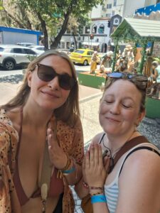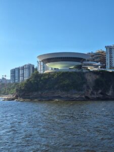 Oorspronkelijk had ik het plan opgevat om Frauke mee te nemen naar Ilhabela, een prachtig paradijselijk eiland voor de kust van Rio. Maar eenmaal aangekomen, hadden we helemaal geen zin om weeral zo snel weg te gaan. Dus besluiten we een airbnb te boeken en genieten we van dagen aan het strand, Braziliaans eten en spreken we af met een andere vriendin van me, Youandi. We bezoeken de Cristo el Redentor, een bezoek dat ik heb uitgesteld tot Frauke er zou zijn omdat ik wist dat ze het ook zou willen bezoeken. We hadden hoge verwachtingen maar eigenlijk is het beeld mooier om van verder weg te zien dan van dichtbij. Het is er druk en de wachttijden zijn lang. We doen ook een boottocht met z’n drieën in een mooie baai die uitkijkt op de Christo, deze tocht was erg leuk! We glippen het bovenste dek op, dat eigenlijk voorbehouden was. Met onze haren in de wind varen we langs rotsen, bezienswaardigheden en het museum van hedendaagse kunst, dat ontworpen is door een bekende Braziliaanse architect, Oscar Niemeyer. De kunst nerd in mij gilt bij het zien van het ufo-vormige gebouw, zo cool!